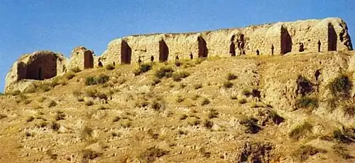 Afrasiyab (Uzbek: Afrosiyob),(Persian: افراسياب afrāsiyāb) is an ancient site in Northern Samarkand, present day Uzbekistan, that was occupied from c. 500 BC to 1220 AD prior to the Mongol invasion in the 13th century (see Siege of Samarkand (1220)).[1] The oldest layers date from the middle of the first millennium BC.[1] Today, it is a hilly grass mound located near the Bibi Khanaum Mosque. Excavations uncovered the now famous Afrasiab frescoes exposed in the Afrasiab Museum of Samarkand, located next to the archaeological site.