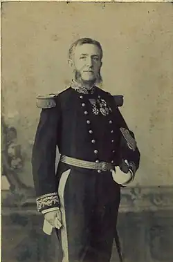 Privat Antoine Agathon Hennique was born on 12 September 1810 in Couvron-et-Aumencourt, Aisne.[1] On 5 December 1830 he joined the 61st Line Regiment.[2] In 1832 he transferred to the Marine Infantry.[1] He was promoted to second lieutenant 27 December 1838 and to lieutenant on 8 October 1840. On 1 January 1841 he was serving with the Bourbon detachment of the 3rd Marine Infantry Regiment. He was promoted to captain on 3 January 1843.[2] On 4 September 1843 he married Héloïse Clarisse Piot. Their children were Privat Agathon Benjamin Arthur (1844–1916), Agathon Nicolas Auguste Ernest (1845–1891) and Léon (1850–1935).[1] His son Léon Hennique, born in Basse-Terre, Guadeloupe, became a naturalist novelist and dramatist.[3] On 1 January 1847 he was an adjudant-major in Toulon.[2]
