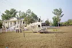 Wing of downed USAF warplane at the Vietnam Military History Museum