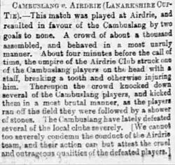 Airdrie 0–2 Cambuslang, 1881–82 Lanarkshire Cup semi-final, from the Rutherglen Reformer, 17 February 1882