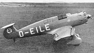 The Darmstadt D-29 was a German experimental monoplane designed and built by Akaflieg Darmstadt (of the Darmstadt University of Technology). The D-29 was a cantilever low-wing monoplane designed and built during 1936 with a conventional landing gear with a tailskid. It was powered by a Siemens-Halske Sh 14a radial piston engine and had enclosed tandem cockpits, as well as a number of other features, including hydraulically actuated trailing-edge flaps, a braced T-tail and leading-edge slots.