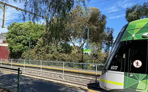 Albert Park is a light rail station on the former St Kilda line, located in the Melbourne suburb of Albert Park, Victoria. The station is located on Ferrars Street just to the north of Albert Road, just minutes walk from the Bob Jane Stadium, current home of the South Melbourne Soccer club and the former home of the South Melbourne Football Club. A pair of low level side platforms now serve route 96 trams on the light rail line.