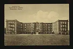 In July 1916 the board of the college confirmed the decision to move to Edmonton.[23] An advertisement in the August 16, 1916 edition of the Grain Growers Guide stated that the college was “now located in Assiniboia Hall, University Building, Edmonton, Alberta”.[24] An article in a September 1916 issue of the Edmonton Bulletin noted that the college moved “lock, stock and barrel” from Red Deer to Edmonton in one week, and was looking forward to its new location and close relationship with the University of Alberta.[25] On October 31, the college staff and students held a reception in their new home for the university and Edmonton community to get a "glimpse into the daily life of Red Deer Ladies' College".[26]