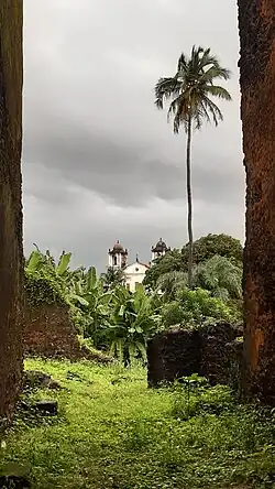 A view of the Igreja e Convento do Carmo (pt) framed by the ruins of Palácio Negro, Alcântara in 2024