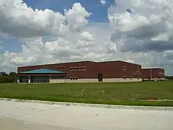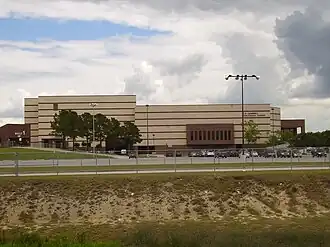 The current headquarters building is the M.B. Sonny Donaldson Administration Building, a two-story facility in unincorporated Harris County, Texas, across from Nimitz High School.[49] The school district acquired the facility in spring 2015 from Baker Hughes and opened it on March 21, 2016, with the dedication ceremony on April 19 of that year. The funds to purchase it came from the general operating budget.[50]