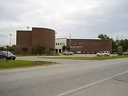 On May 4, 1935, voters in Common School District 29 approved creation of the Aldine Independent School District (AISD) by a 128 to 28 margin.[18] With the S.M.N. Marrs School filled to capacity, AISD voters approved 57-14 a $25,000 bond for construction of a new 10-classroom junior/senior high school building on September 7, 1935.[19] This new building opened in 1936 next door to the Marrs School on Aldine-Westfield Road.[20] It too was named S.M.N. Marrs. AISD acquired part of Common School District 26, also known as the White Oak District, in 1937.[21] This added portions of Acres Homes to AISD. Included was the White Oak School, which became the district's school for black students. In the spring of 1948, AISD opened another high school located immediately to the north of S.M.N. Marrs High.[22] This school was named Aldine High School, after the nearby community. The former Marrs High School was turned into a junior high school.