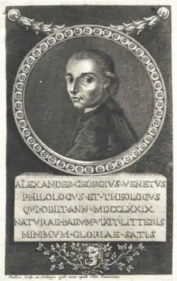 Alessandro Zorzi in Latin as Alexander Georgius (11 September 1747 – 14 July 1779) was an Italian Jesuit theologian and was a promoter of an Italian encyclopedia project called the Nuova enciclopedia italiana. He collected geographical information and the itineraries of early African travellers.