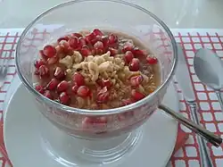 Other, similar practices include kissing door frames of holy rooms; not stepping on the threshold of holy buildings; seeking prayers from reputed healers; and making lokma and sharing it with others. Also, Ashure is made and shared with friends and family during the month of Muharram in which the Day of Ashure takes place.[42]