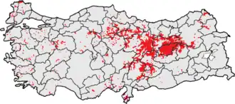 The term “Alevi-Bektashi” is currently a widely and frequently used expression in the religious discourse of Turkey as an umbrella term for the two religious groups of Alevism and Bektashism.[17] Adherents of Alevism are found primarily in Turkey and estimates of the percentage of Turkey's population that are Alevi include between 4% and 15%.[11][18][19]