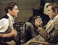 The episode A Suitable Marriage was very controversial. In the episode's time setting, homosexuality was illegal in Britain, and was not decriminalized until 1967.[14] The actors Baron Klaus von Rimmer (Horst Janson) and Alfred Harris (George Innes) also did things in the episode that did not make it to air: "The episode was considered too controversial for American TV (at any time of the day or night), even though in Britain it got an afternoon repeat in 1973. Nevertheless, events in the episode never got to the stage shown in the lower photo, which is presumably the actors messing around!"[15]