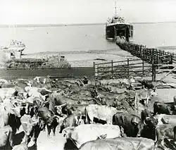 Northern Territory cattlemen were excluded from a long term meat agreement between Britain and Australia, as their cattle did not meet quality and weight requirements. There were occasional shipments to Hong Kong, Batavia, Singapore and Manila from 1884. While there were over 34,000 head exported in the 1920s mainly to Manila, there is no record of any live cattle trade between 1929 and 1954. After several failed attempts in 1954 and 1955, Rose convinced of the potential of the live cattle market, began experimented with methods of improving cattle condition. He designed the Fort Hill yards in Darwin, and upon opening in 1957, Darwin became the major port for the export of live cattle. Trade resumed in 1958.[2]