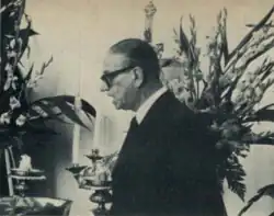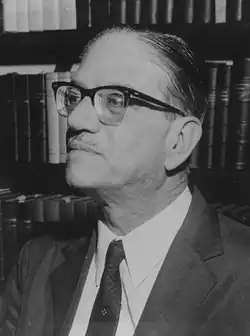 Alfredo Buzaid participated in the Sociedade de Estudos Políticos (Society of Political Studies), a group of São Paulo Law students centered around Plínio Salgado.[3] From that group emerged the Brazilian Integralist Action (AIB), of which Buzaid was active in the São Paulo Integralist Students Section,[4] He wrote for the group's official newspaper, O Integralista, in November 1932, one month after the ofounding of AIB.[5] He was head of the AIB section in his municipality, Jaboticabal, and remained in his integralist beliefs until the end of his life, according to historian and parliamentarian Carlos Giannazi.[6]