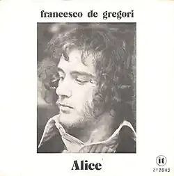 "Alice" is a song by Italian singer Francesco De Gregori, released in 1973. The debut single of De Gregori, it was included in the album Alice non lo sa.