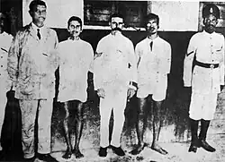 Of the two sentenced to death by hanging (but released in 1920), Ullaskar Dutt, a young man of 22, described his occupation as a cow keeper.[17] Barindra Kumar Ghosh, younger brother of Aurobindo Ghosh, was a key player in the Alipore trial. It was in their house that the revolutionaries carried out their activities. Barindra had been born in England and came to India at the age of one. According to British Indian law, he was asked whether he preferred being tried as a British citizen. Barin, as a nationalist, refused. Those two were sentenced to death, with the sentence later commuted to life imprisonment in the Cellular Jail in Andamans, where they remained until a general amnesty, in 1920.[17]