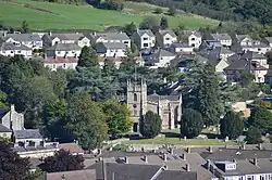 "Other than the simple C15 Perp[endicular] w[est] tower, the church was rebuilt in 1830-2 by John Pinch the Younger. E Harbottle of Exeter added the chancel and transepts in 1893, and Mowbray A. Green a memorial chapel in 1921. Nave and aisles. Tall lancet-like three-light windows with four-centred arches and Perp tracery. Battlements and pinnacles. Arcade of tall piers of Perp section carrying four-centred arches. The nave is broad and low with a rear gallery ..." [Forsyth, 295] "Plate: Chalice and Cover 1572; Apostle Spoon 1614; Chalice and Paten 1692; Flagon 1739." [Pevsner, 334]
