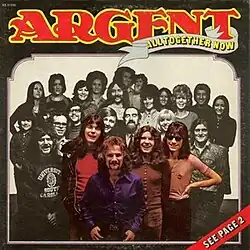 All Together Now is the third album by British rock band Argent, released in April 1972. It was originally released on Epic Records, KE 31556. It was Argent's first hit album; it features "Hold Your Head Up", their most successful single, which reached #5 in the UK, Canadian, and U.S. singles charts. Other featured songs include "Tragedy" which reached #34 in the UK, "I Am the Dance of Ages" and "He's a Dynamo". The album reached #14 in Canada.[2]