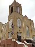 The Tudor Gothic Revival building was designed by noted African-American architect William Sidney Pittman, son-in-law of Booker T. Washington. When the church was completed in 1914, it sat 1,350 people. It was named after Richard Allen, a former slave and African-American minister who was the first bishop of the African-American Methodist Episcopal Church. Built at a cost of $20,000 it is the oldest and largest African Methodist Episcopal church in Fort Worth. The church established the first private schools for African-Americans. A pipe organ was installed in 1923. In 2011 lightning hit the church's bell tower causing extensive damage.[2]