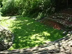 Alma College amphitheatre as of Summer 2008 after restoration. The amphitheatre has since been vandalized and fallen to disrepair [13]