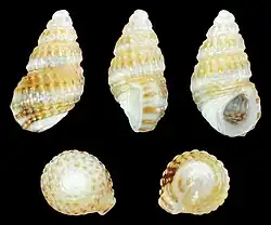 This article incorporates text from this source, which is in the public domain. Watson, R. B. (1873). On some marine mollusca from Madeira, including a new genus of the Muricinae, a new Eulima and the whole of the Rissoa of the group of islands. Proceedings of the Zoological Society of London. 1873: 361-391