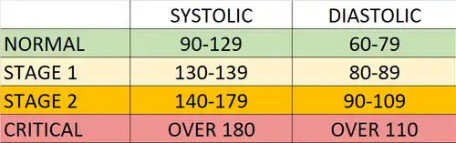 Hypertension is a condition characterized by persistently high blood pressure.[39][40] Two measurements are taken to quantify blood pressure: systolic and diastolic blood pressure.[40] A patient is diagnosed as hypertensive when their systolic blood pressure is greater than 140 mmHg or diastolic blood pressure is greater than 90 mmHg. Not many people with hypertension are aware that they have the condition.[40][39] In 2010, 31.1% of adults worldwide had hypertension, but only 45.6% of them were aware they had the condition.[40] Hypertension is more apparent in the Hispanic/Latino population, as in 2008 the incidence rate of hypertension for Hispanic adults aged 45–84 was 65.7%, compared to 56.8% for non-Hispanic whites of the same age.[2][41] Hispanic/Latinos are more likely to be unaware of their condition, compared to non-Hispanics, and be less likely to seek treatment, which increases the risk of developing cardiovascular disease and AD.[41][40] Hypertension can be reduced by lifestyle changes (e.g., weight loss and exercise) and pharmacological intervention.[38][39] Multiple studies suggest that use of antihypertensive drugs might reduce the risk of dementia and AD.[38][19]