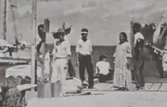 The "lost evidence" in question was a photograph found in the National Archives at College Park of Jaluit Atoll in the South Seas Mandate, the interwar Japanese mandate that included the Marshall Islands. The photograph includes two European-looking people. The documentary, through a forensic analyst who specialized in facial recognition, posited that it was "very likely" to be a picture of a captured Earhart and Noonan.[1] The Lost Evidence also says that a barge in the background might possibly contain a plane, and that plane might possibly have been the Electra.[2] The photograph was from the Office of Naval Intelligence (ONI) and prepared for the 1944 invasion of the Marshall Islands during World War II. The documentary suggested that a ship seen in the background flying a Japanese flag might be the Kōshū Maru, a Japanese military naval vessel that would have been involved in transporting the captives. It suggests that perhaps the Kōshū Maru transported them to Saipan, where they died in custody. The documentary also cited existing evidence for the Japanese capture hypothesis, such as locals who claimed to have witnessed a plane crash at Mili Atoll.[3] It also suggested that the US government might have known about the capture and covered this knowledge up.[2]
