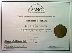 The American Association of Nutritional Consultants (AANC) is an organization based in Warsaw, Indiana, for nutritional and dietary consultants. It does not restrict its membership to those who have any verifiable credentials.