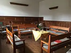 The meeting house forms part of an extension to the adjoining cottage, Whielden Cottage, which was built c. 1600. The cottage was extended in 1689 to serve as a Quaker meeting house for the Quakers who had begun to meet in Amersham from the 1660s. The Amersham Quakers received a letter from the noted early Quaker Isaac Penington in 1667.[3]