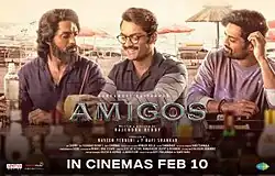Amigos (transl. Friends[a]) is a 2023 Indian Telugu-language action thriller film directed by Rajendra Reddy and produced by Mythri Movie Makers. The film features Nandamuri Kalyan Ram in a triple role as Siddharth, Manjunath and Michael with Hero, Villain and Doppelganger, while Ashika Ranganath, Brahmaji, Saptagiri, Jayaprakash, Satyam Rajesh, Raghu Karumanchi and Ravi Prakash appear in supporting roles. The music was composed by Ghibran, while the cinematography and editing were handled by Soundararajan and Tammiraju.