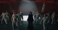 A shot from the song's music video, showing Roxen surrounded by contemporary dance artists at an empty National Theatre Bucharest.