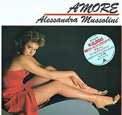 Amore is the debut and only studio album by Alessandra Mussolini. The album was released by Alfa Records in 1982 in Japan only and was produced by Miki Curtis. On the album, Mussolini sang songs in Italian, English, and Japanese.[1] In 1982, Mussolini and her mother paid a visit to Japan. When asked if her daughter could sing for an advertisement, Mussolini's mother gave a positive answer, even though Mussolini had never sung before. Mussolini recalled that "When I sang in Japan, Cristiano Malgioglio (author of some of her songs on the album) saved me".[2] The album was broadcast in Italy for the first time in a program of Canale 5 in 1996.[3]