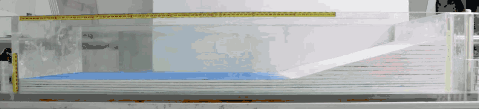 The simple analogue modelling of the fold-thrust belt system taken in the Nanjing University physical laboratory. The white and blue materials are quartz sands.