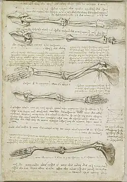 Leonardo da Vinci (1452–1519) was trained in anatomy by Andrea del Verrocchio.[75] He made use of his anatomical knowledge in his artwork, making many sketches of skeletal structures, muscles and organs of humans and other vertebrates that he dissected.[75][79]