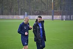 ![]() André Kilian consulting with Rick van Drongelen during his time at Hamburger SV. | |||