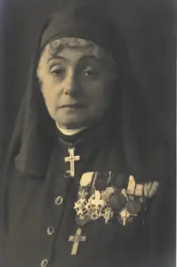 For her work in Serbia as Head of the newly founded Greek Red Cross she was awarded in December 1914 with the Silver Cross of the Order of the Redeemer by the Greek State and in spring of 1915 with the Serbian Medal of Saint Andrew by the Serb King and with the Cross of the Empress Elisabeth of Austria, for her services to the wounded and ill Serb soldiers and their Austrian captives. She was awarded with the Silver Medal award for virtue and self-sacrifice by the Academy of Athens. She was honored with 28 medals in total.[3]