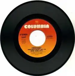 "Another Rainy Day in New York City" is a song written by Robert Lamm for the group Chicago and recorded for their album Chicago X (1976). Described as "the only typical Chicago cut on the album[:] upbeat and light with good blending of lead vocal by [Peter] Cetera",[2] the track would be the album's lead single but was largely passed over for radio airplay in favor of the album cut "If You Leave Me Now".[3] Rush-released as a single, "If You Leave Me Now" debuted on the Billboard Hot 100 of 14 August 1976 at No. 60 - on its way to No. 1 - and immediately eclipsed "Another Rainy Day..." which on the same chart fell to No. 46 from its No. 32 peak. "Another Rainy Day..." peaked at No. 2 on the Billboard Adult Contemporary chart.[4]