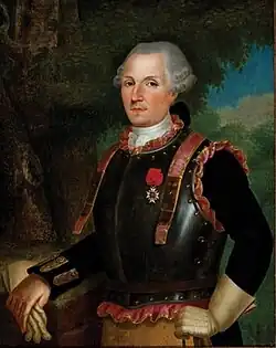 Antoine Philippe de Marigny was born in Mobile in 1721, among the earliest French colonists born there. His parents were François Philippe de Marigny de Mandeville, a native of Bayeux who migrated to Canada in 1709 and then to Louisiana by 1714; and Madeleine le Maire. Considered a Creole because of his birth in La Louisiane, de Marigny belonged to a family that was part of the minor provincial nobility of France. Their paternal ancestor Pierre Philippe de Marigny de Mandeville was ennobled in 1654. After her husband's death, the widow Madeleine de Marigny married the colony's royal engineer, Ignace François Broutin.[1]