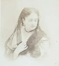 After the coup of Pavía in January 1874, she became a prominent figure of the First Spanish Republic, which became presided by her husband as a sort of Spanish MacMahon.[10] According to Charles Benoist; when Serrano left the capital to fight the Carlists in the north, the Republic was not left without a President as she was the real president, becoming even more of a president once her husband returned.[11] During this period she continued with her anti-alfonsine activity,[10] opposing the possibility of the restoration of the monarchy in the person of Alfonso, the son of Isabella II.