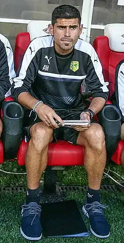 Hidalgo then had a spell at Tenerife, suffering relegation in his sole season before joining Sabadell of his native region in January 2012, shortly before turning 33.[6] In March 2014, the captain extended his stay with the Arlequinats for another year.[7] When his contract ended, he played for several weeks with Cornellà in the Segunda División B before retiring in November 2015, immediately becoming a youth team coach.[8]