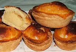 Pasticciotto is a type of filled Apulian pastry. Depending on the region, they are traditionally filled with either ricotta cheese or egg custard. Pasticciotti are approximately 1 inch (2.5 cm) thick.[48] They are typically served as a breakfast item, but may also be eaten throughout the day,[49][50] and are a traditional pastry in Apulia.[48] According to a number of sources, pasticciotti should be eaten warm.[49][51][52]