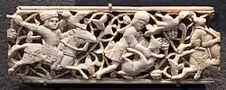 Arabesque pattern behind hunters on ivory plaque, 11th–12th century, Egypt
