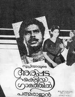 Arappatta Kettiya Gramathil (transl. In the Village Which Wears a Warrior's Belt) is a 1986 Malayalam film directed by P. Padmarajan, based on his own short story of the same name. The film revolves around three people, Zechariah (Mammootty), Hilal (Ashokan), Gopi (Nedumudi Venu), who go to a brothel in a remote village and the problems they had to face there in the next 24 hours. It also stars Gomathi (Gothami), Sukumari Sukumari, Unnimary Unnimary, and Jagathy Sreekumar in other pivotal roles. The movie revolves with the character Gowrikutty acted by (Gothami).