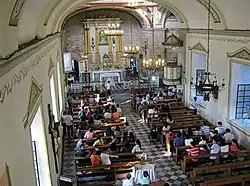 The sanctuary was damaged again by tremors in 1867. Fr. Marcos Anton repaired the minor damages, installed a new altar and a presbytery floor and constructed an iron balustrade around it. The interior was decorated under the direction of Italian decorator Cesar Alberoni.[3] In 1880, Fr. Agapito Aparicio installed an organ bought from the famous organist Don Doroteo Otorelin of Palencia, Spain. Fortunately, the earthquake of 1880 did not cause serious damage to the sanctuary.[3]