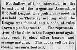 On 7 March 1891, the act of foundation of the "Argentine Association Football League" was signed.[4] Board members were F.L. Wooley (president),[1] Rovenscraf, Arcels, Mc Ewen, Hughes, Mc Intoch and Alec Lamont.[5][6]