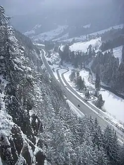 The Arlberg Schnellstraße (S16) is an expressway (Schnellstraße) in Austria that is part of the E 60. It runs along a length of 62.2 km between Zams and Bludenz and connects the Inn Valley Autobahn (A12) in Tyrol with the Rheintal/Walgau Autobahn (A14) in Vorarlberg. The border between the two states is located in the Arlberg Tunnel (toll), which is 13,972 m long and is also the longest road tunnel in Austria. Overall, more than half of the route runs in long tunnels.