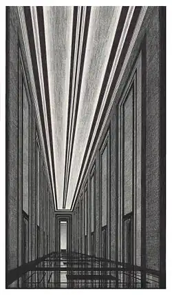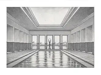 His drawings of the 1920s are predominately interior design and architecture projects with evident influences of the Vienna Secession (decoration of the Cinema Lux) and later Art Deco (shop of Bandini fabrics; project of the bakelite lamp "Skyscraper", an early example of industrial design of which was executed a prototype in lacquered wood).