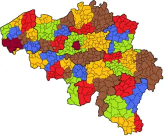 Arrondissements of Belgium (plural in Dutch: arrondissementen) are subdivisions below the provinces of Belgium. There are administrative, judicial and electoral arrondissements. These may or may not relate to identical geographical areas.