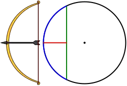 Ancient Indian astronomers often associate the interdependent trigonometrical components with the picture of a bow and arrow, the arrow (utkrama-jyā) equivalent to the present day secant.[36]