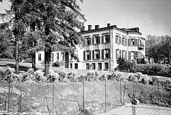 Shortly afterwards he bought the Villa Frognæs, built in 1859 for the banker Thomas Heftye and recognized as one of the finest private residences in the city, to be the British Legation. The Foreign Office had strongly recommended a rental property, but Herbert argued that with the new Norwegian king, Haakon VII, married to a British princess, it was imperative for Britain to establish a first-class legation there, and the British Treasury approved the purchase early in 1906.[8] The Villa Frognæs remains the official residence of the British Ambassador, but new offices have been built behind the house, facing Thomas Heftyes gate, to house the embassy.
