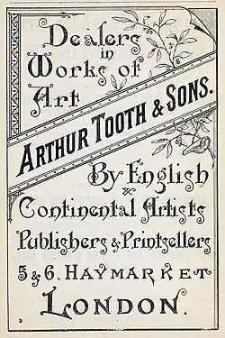 Arthur Tooth was particularly successful in the sale of photogravures of Pre-Raphaelite and other works and dominated the market in this field.[15][16] Reproductive prints have been called the "cash cow" of the Victorian Art Market, and proved lucrative to Arthur Tooth.[1]