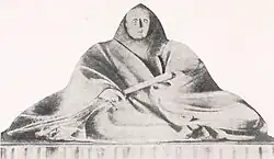 In 1407, he set into motion a plan to become "Daijō tenno" (太上天皇), a title customarily applied to a retired emperor. Although unrealized due to his sudden death the following year, this last venture was particularly audacious because Yoshimitsu never actually sat on the Japanese throne.[3] Late in his career, it appears Yoshimitsu sought to legitimize his transcendent authority through the idiom of Buddhist kingship, deploying ritual, symbols, and monumentalism to cast him as a universal monarch or dharma king, not unlike his counterparts in Southeast Asia.[4] His posthumous name was Rokuon'in (鹿苑院).
